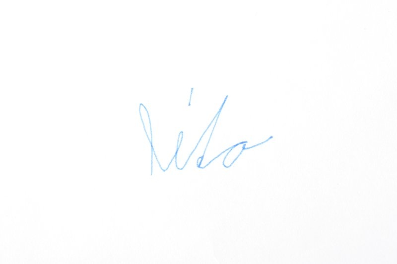 Ľavá ruka je na hornom okraji papiera písacej plochy, hlava je veľmi naklonená nad papierom, prehnutý chrbát (kyfotické držanie)